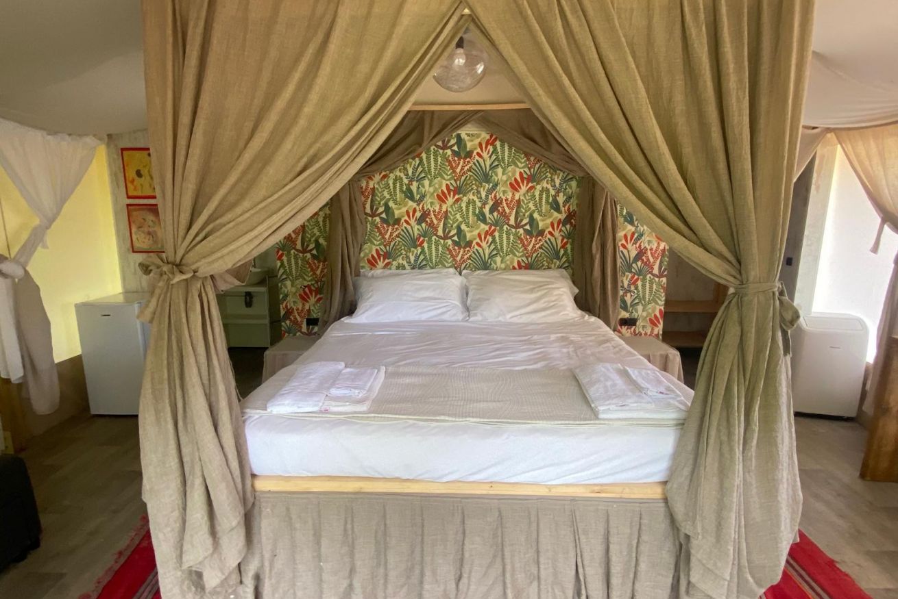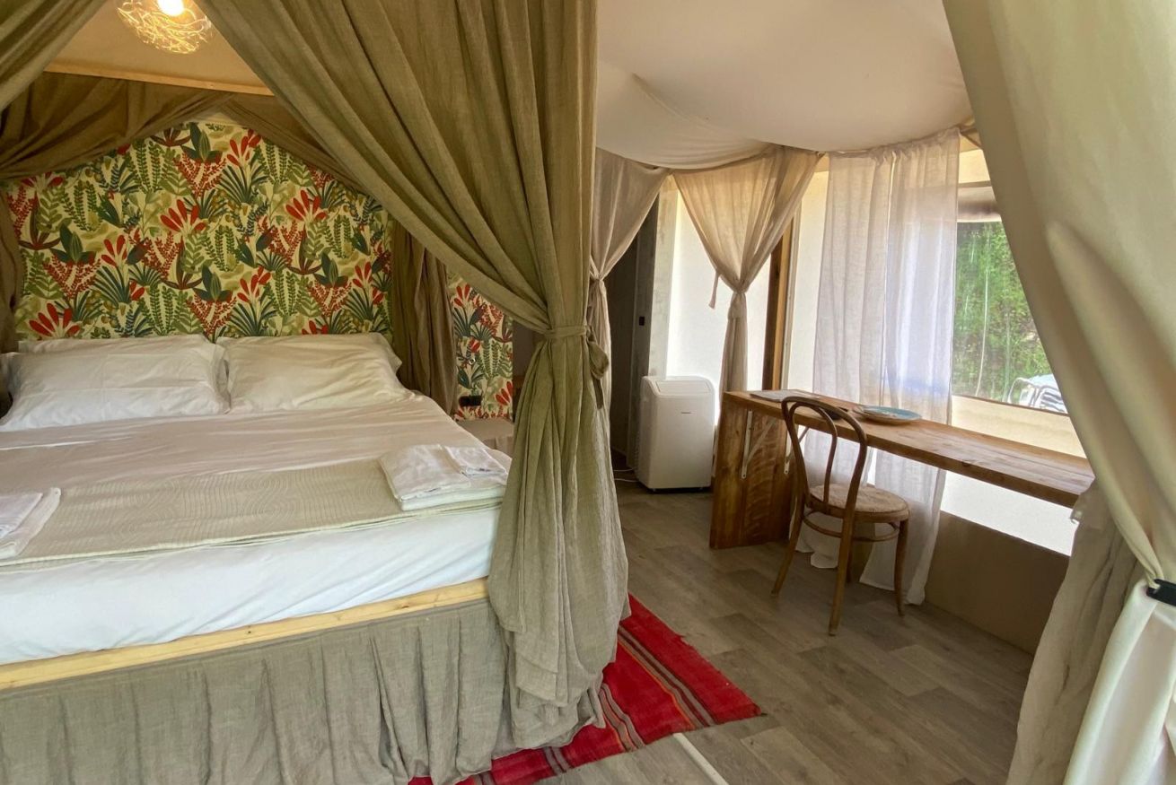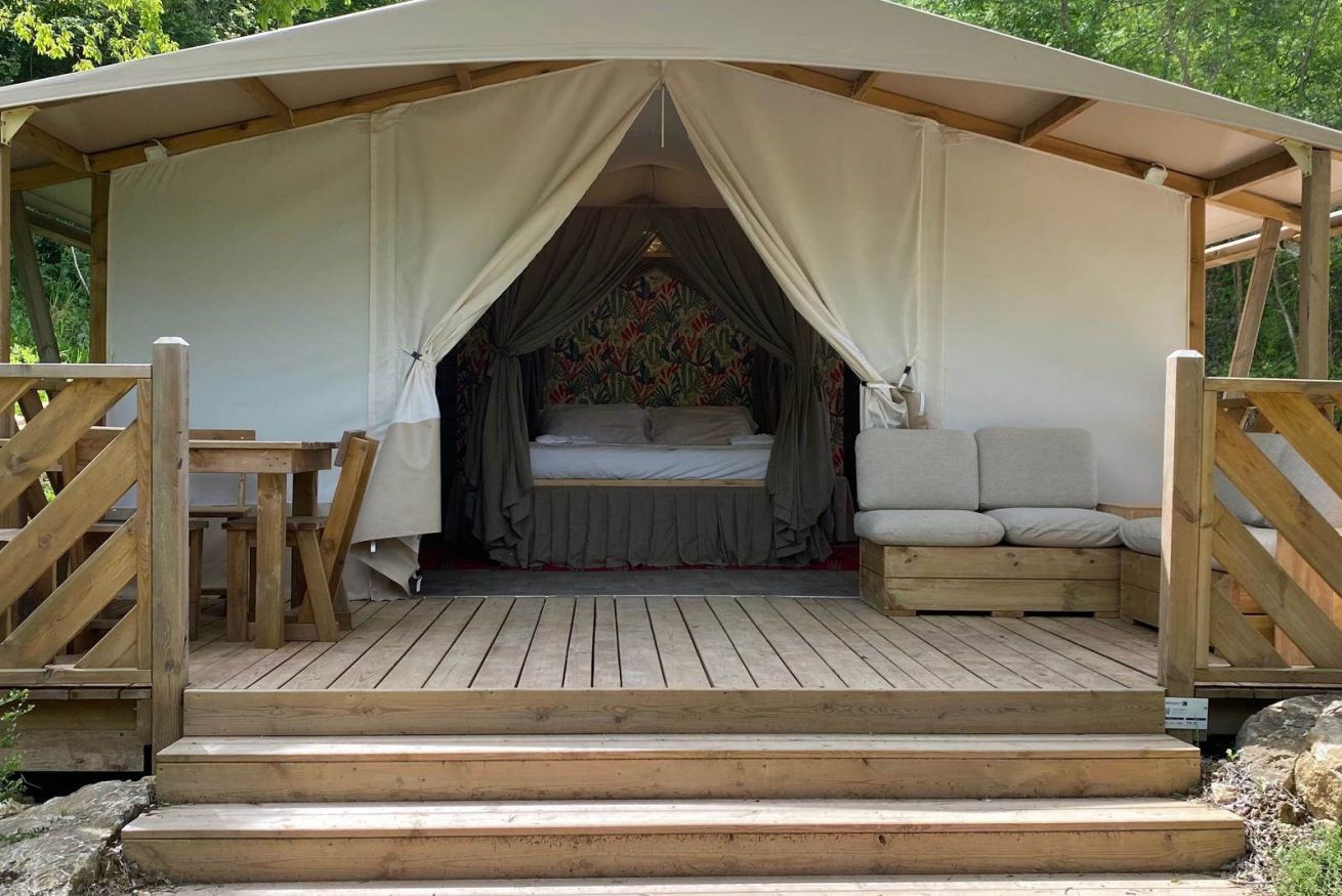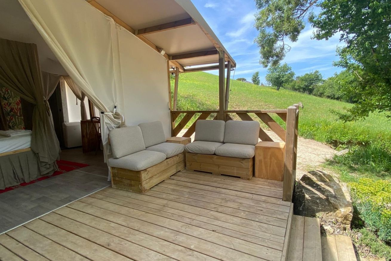 Per chi ama il contatto con la natura, nella tenda GLAMPING di Fontenuova, una esperienza intima e suggestiva nella tranquillità del bosco.